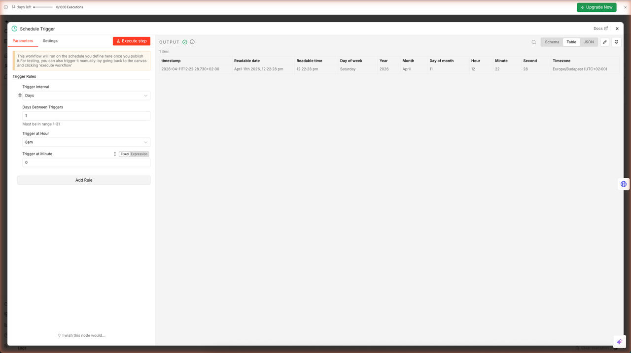 Step 2 — Add a Schedule Trigger {#step2-schedule-trigger}